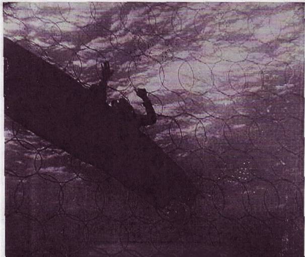 The above photo is a member of OSG 2 in the Sleeping Beauty penetrating the net defenses deployed by the Navy . The member is submerged underwater wearing the Lambertsen Unit navigating underneath the net defenses. (July 1944)
