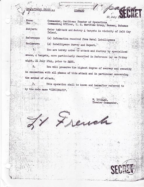 "Operation Cincinnati" Attack Order from Commander Caribbean Theater of Operations